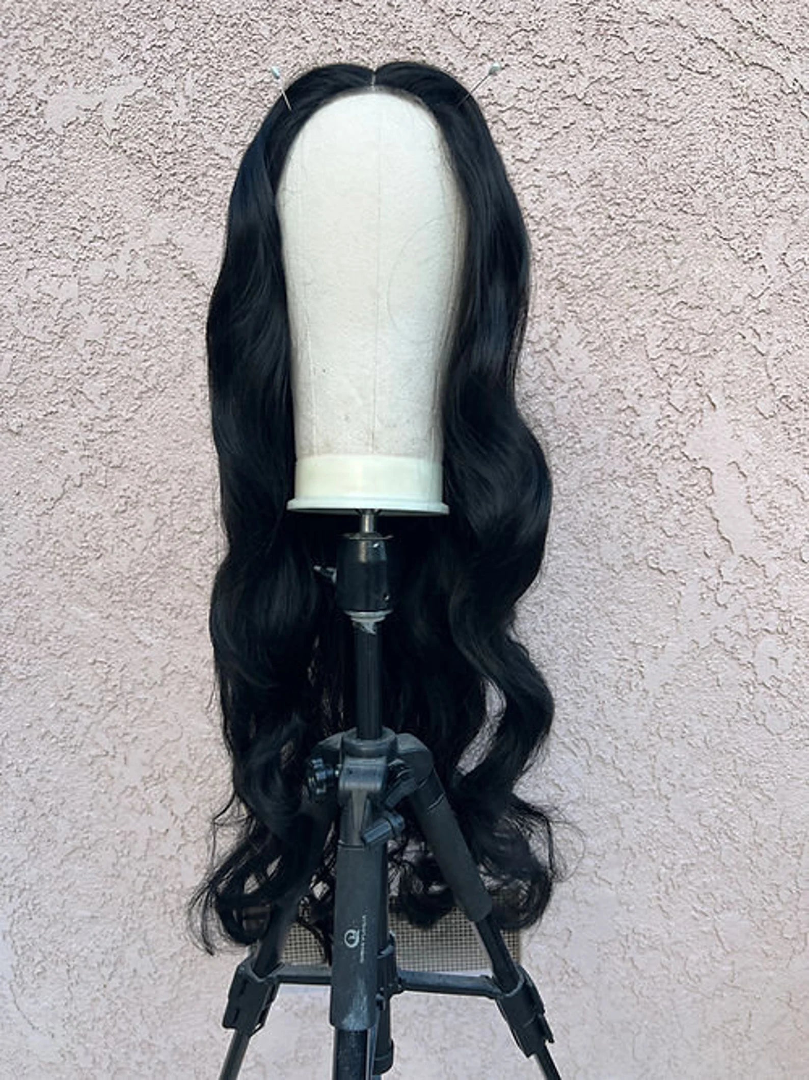Discover effortless elegance with our long natural black wig, stretching a luxurious length of 36" inches and a soft, natural wave. Crafted with meticulous attention to detail, this wig features a lace hairline and was fitted on a 21" block.