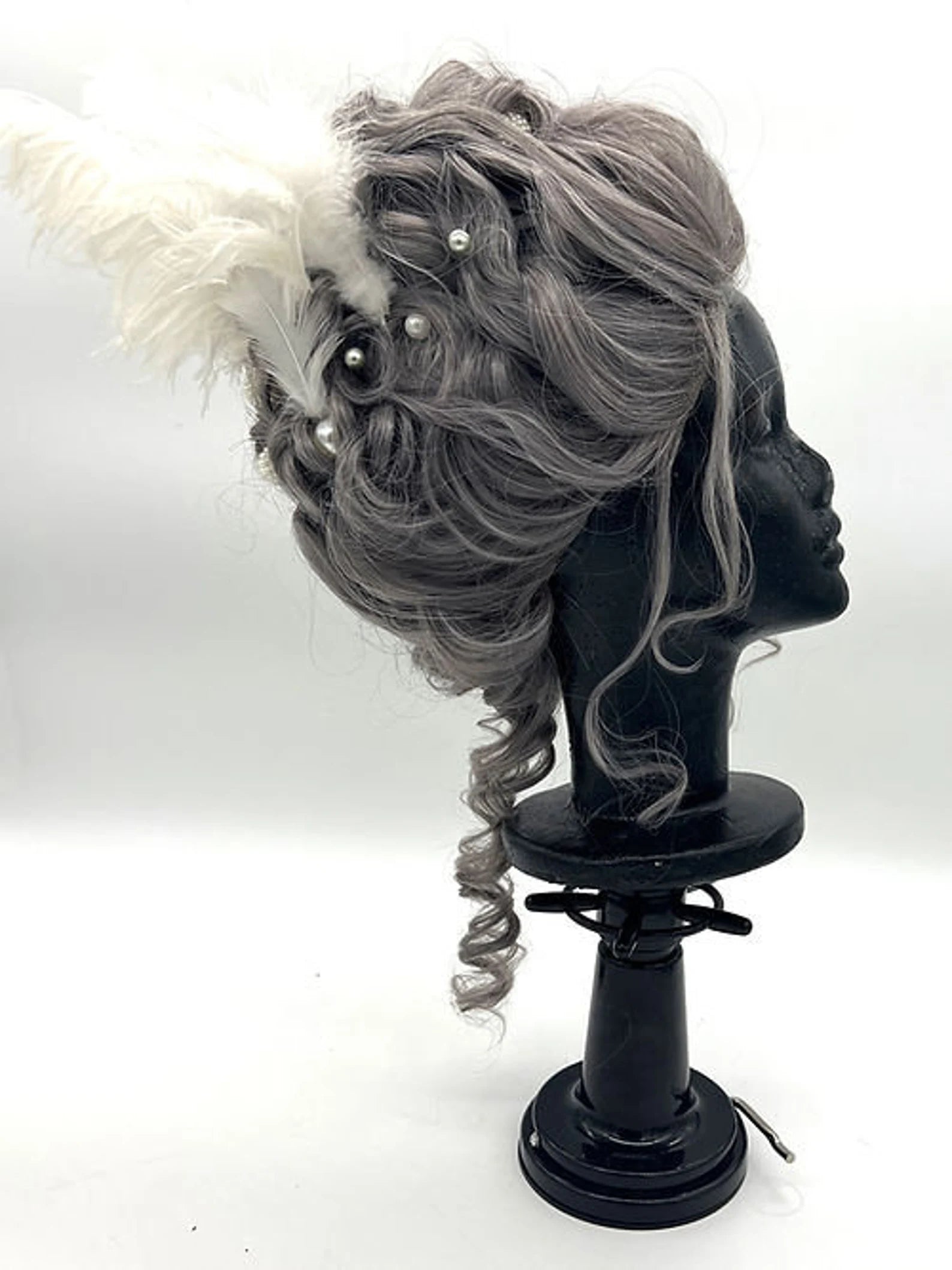 Crafted with premium synthetic hair, our blue-grey wig is fitted on a 21" block. It offers a lightweight and comfortable fit because of its wig cage design. With a lace hairline for seamless blending, this wig ensures a natural and flawless appearance. Elevate your 18th century look with sophistication and comfort.
