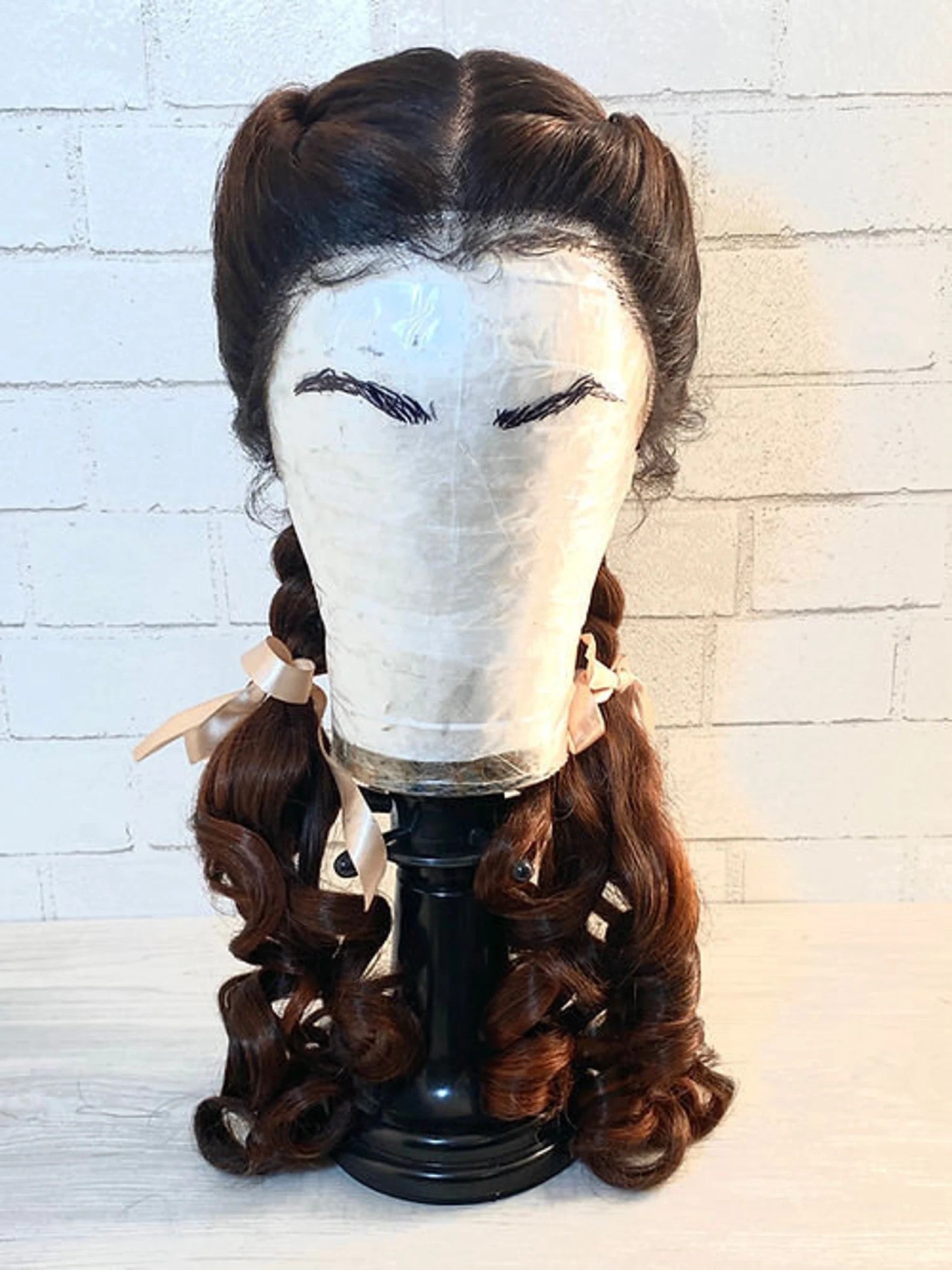 Bring the beloved character of Dorothy to life. The custom hairline is not the only hand tied work... The back is also hand constructed allowing for camera ready reults at every angle. This wig is a human sythetic blend and was built on a 21" block.